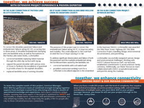 This Roadway INDOT proposal incorporated a theme of "Together We Design" focusing on the bench strength of our team, which included 4 subconsultant firms. It also featured custom landmark icons for each community withing the projects scope as these small communities collaborate as a tourist attraction in Southern Indiana.